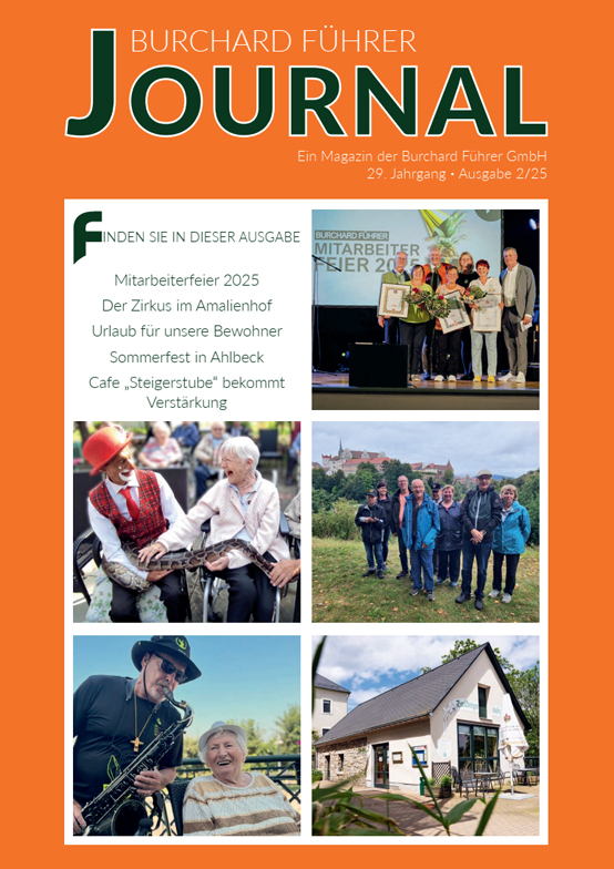 Emotionale Momente, aktuelle Geschehnisse und die kleinen und großen Freuden aus unseren Einrichtungen – In unserem vierteljährlich veröffentlichten Firmenjournal und dem Veranstaltungskalender teilen wir mit Ihnen unsere Neuigkeiten und Termine.